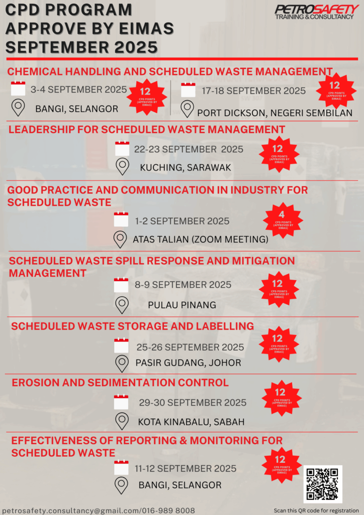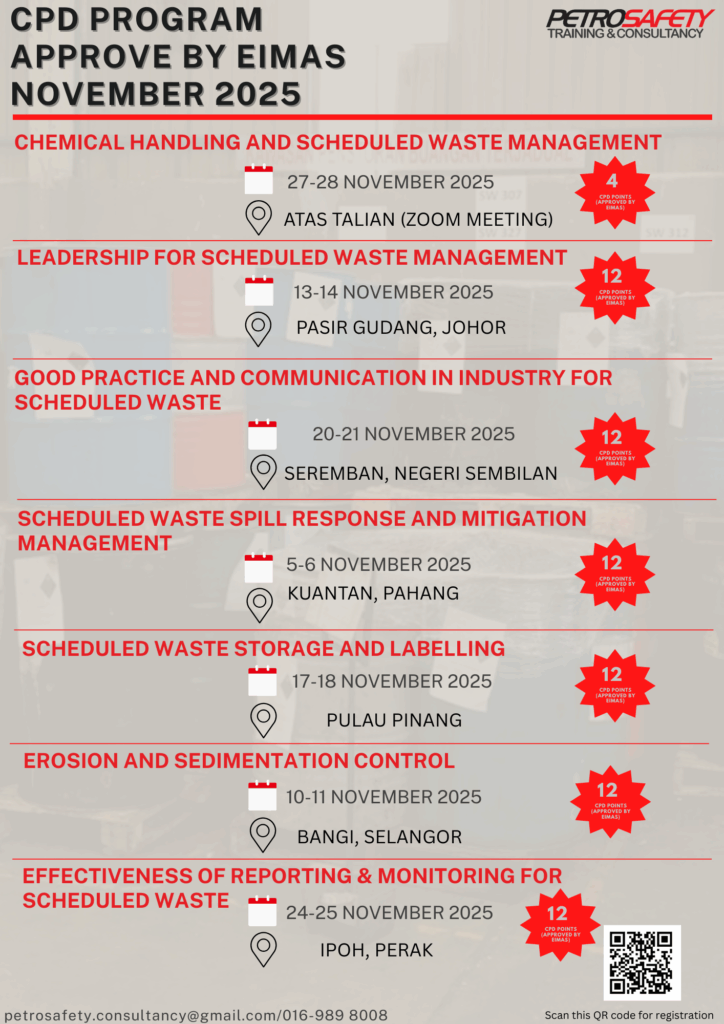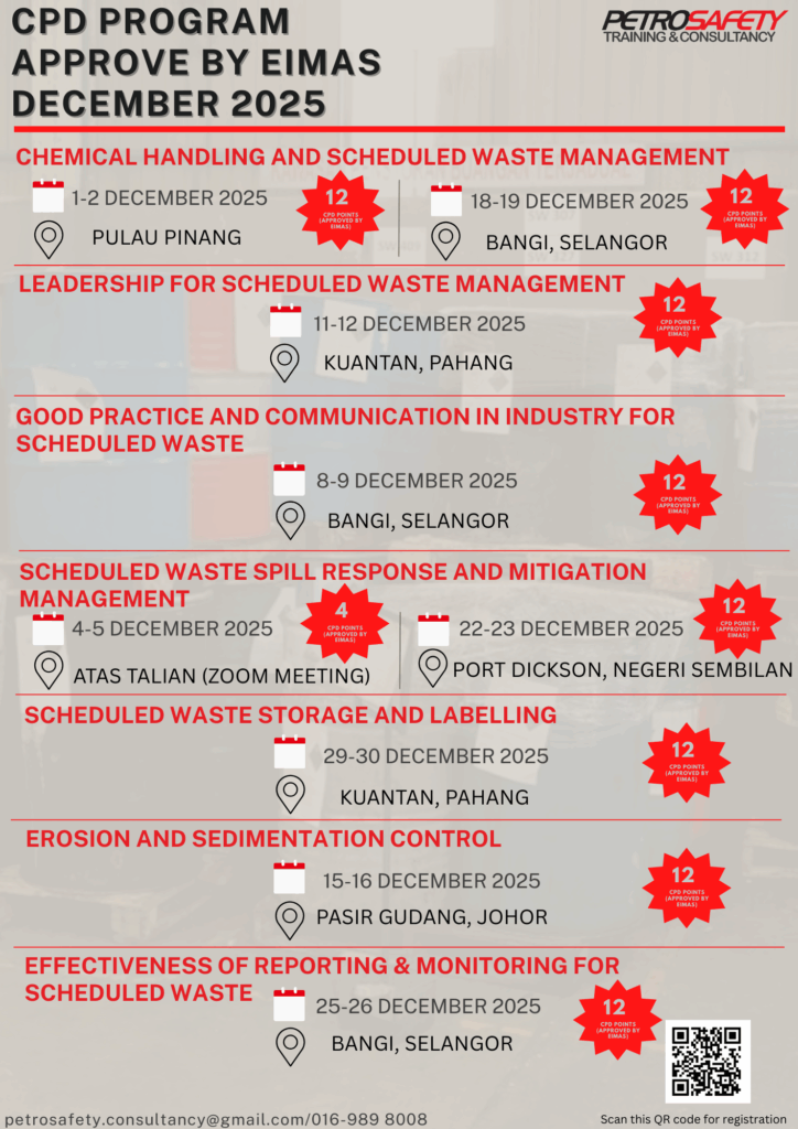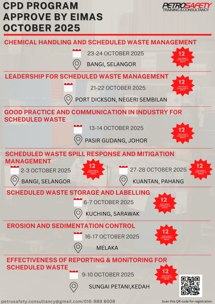 A Certified Environmental Professional is someone approved by the Department of Environment (DOE) to manage pollution control or handle scheduled waste. To be certified, they must complete the required training and follow all rules